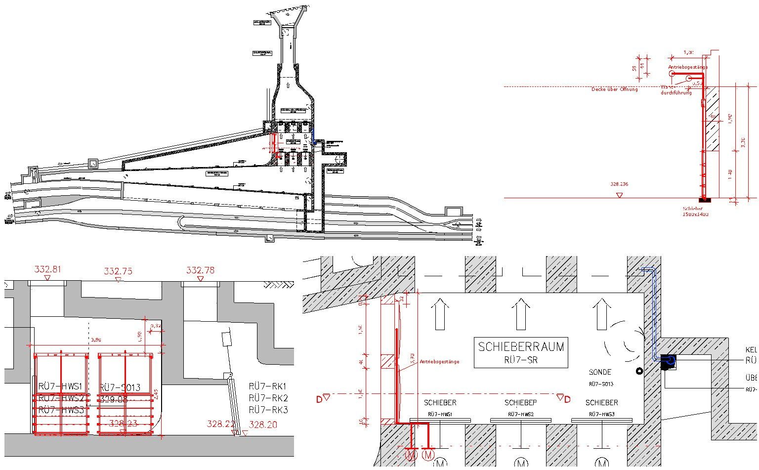 Für Hochwasserschutzanlagen projektieren wir die komplette elektrotechnische Ausrüstung. Der Umfang umfasst in der Regel: